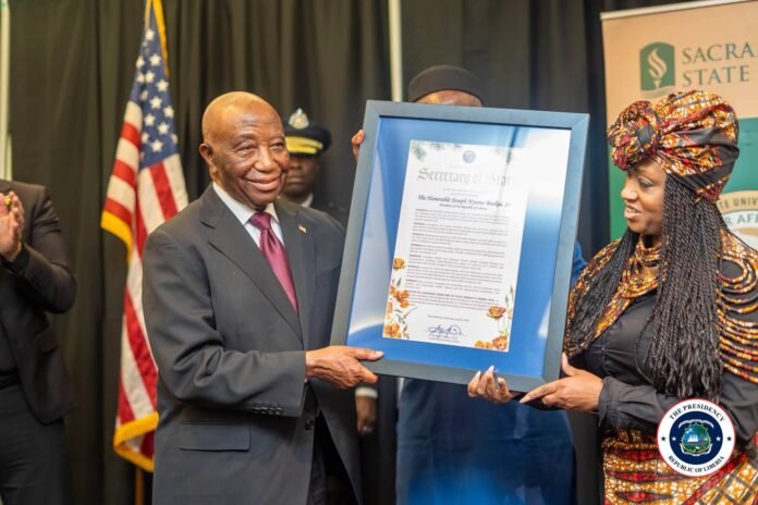 Harper Alumni Center, California State University – Sacramento, USA: – His Excellency President Joseph Nyuma Boakai, Sr., has called on global actors to continue adherence to Global Peace and Security by joining forces to call for global Peace and Stability.