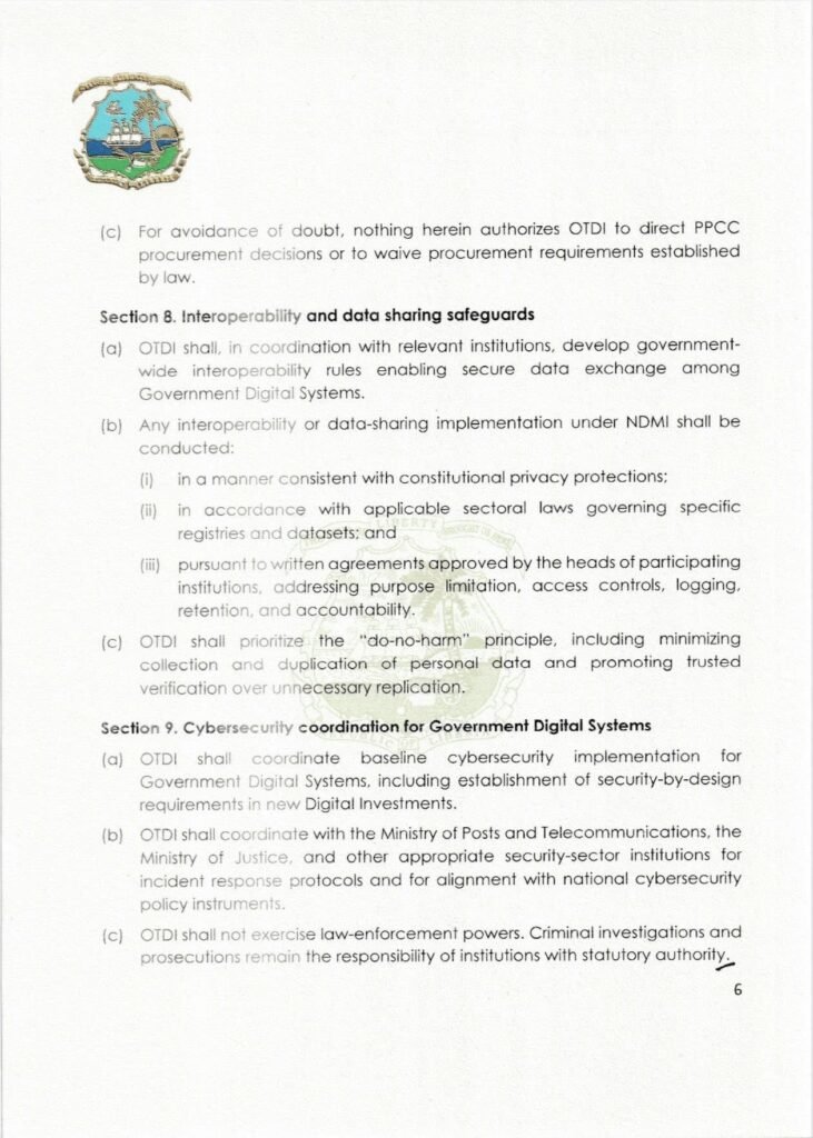 The directive is being viewed as a cornerstone of the Boakai administration’s broader governance reform agenda, laying the institutional foundation for expanded e-government services, digital identity systems, and modernized public service delivery in Liberia.
