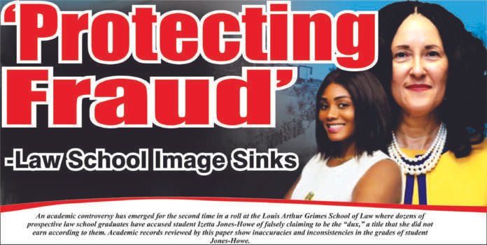An academic controversy has emerged for the second time in a roll at the Louis Arthur Grimes School of Law where dozens of prospective law school graduates have accused student Izetta Jones-Howe of falsely claiming to be the “dux,” a title that she did not earn according to them. Academic records reviewed by this paper show inaccuracies and inconsistencies in the grades of student Jones-Howe.