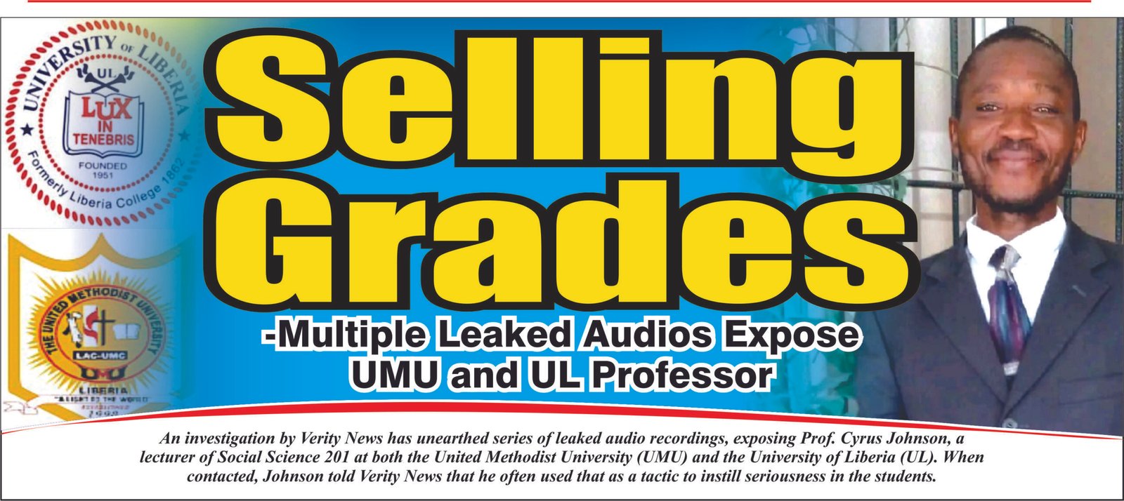 An investigation by Verity News has unearthed series of leaked audio recordings, exposing Prof. Cyrus Johnson, a lecturer of Social Science 201 at both the United Methodist University (UMU) and the University of Liberia (UL).