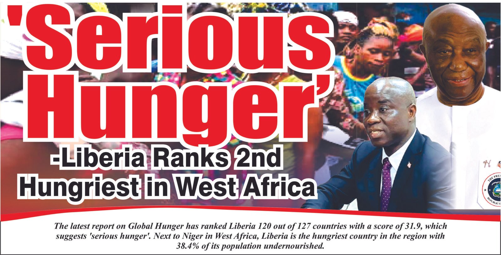 The latest report on Global Hunger has ranked Liberia 120 out of 127 countries with a score of 31.9, which suggests ‘serious hunger.’