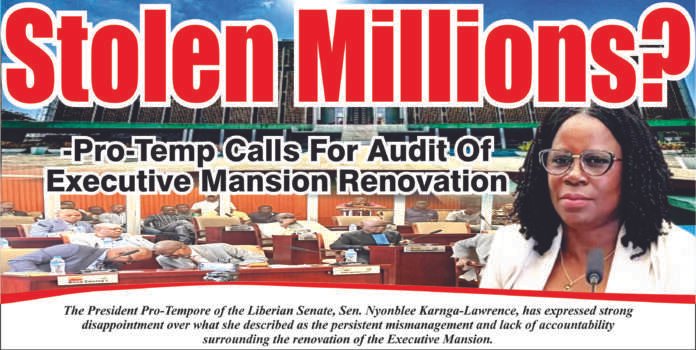 The President Pro-Tempore of the Liberian Senate, Hon. Nyonblee Karnga-Lawrence, has expressed strong disappointment over what she described as the persistent mismanagement and lack of accountability surrounding the renovation of the Executive Mansion.