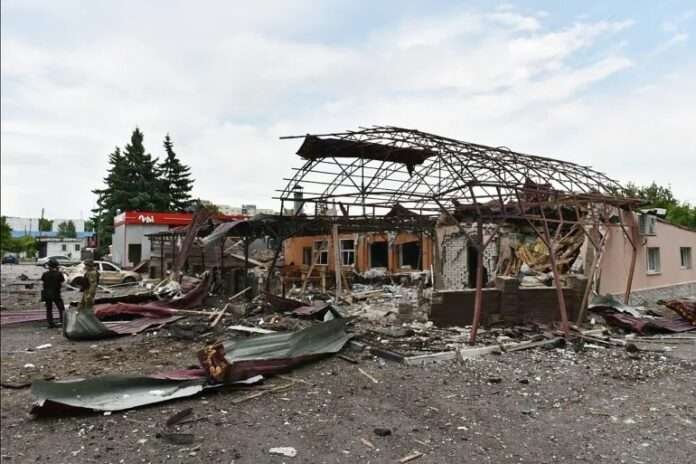 At least 10 people were injured in Kharkiv, Ukraine’s second-biggest city, after a Russian-guided bomb destroyed a cafe and damaged a high-rise apartment block and a nearby trolleybus. Regional prosecutors said the bus driver had to have both legs amputated as a result of the attack.