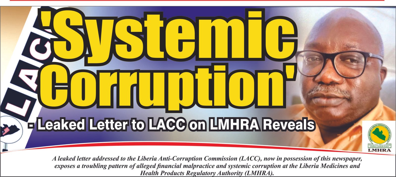 A leaked letter addressed to the Liberia Anti-Corruption Commission (LACC), now in possession of this newspaper, exposes a troubling pattern of alleged financial malpractice and systemic corruption at the Liberia Medicines and Health Products Regulatory Authority (LMHRA).