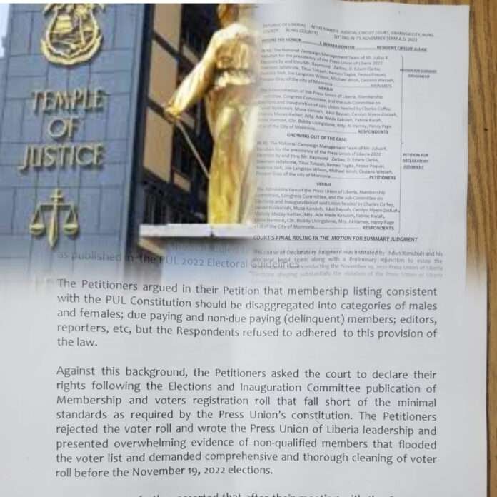 This comes as a result of a pivotal decision by Judge J. Boima Kontoe of the Ninth Judicial Circuit Court in Gbarnga, Bong County, annulling the outcome of the controversial Press Union of Liberia (PUL) 2022 elections.