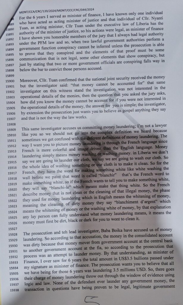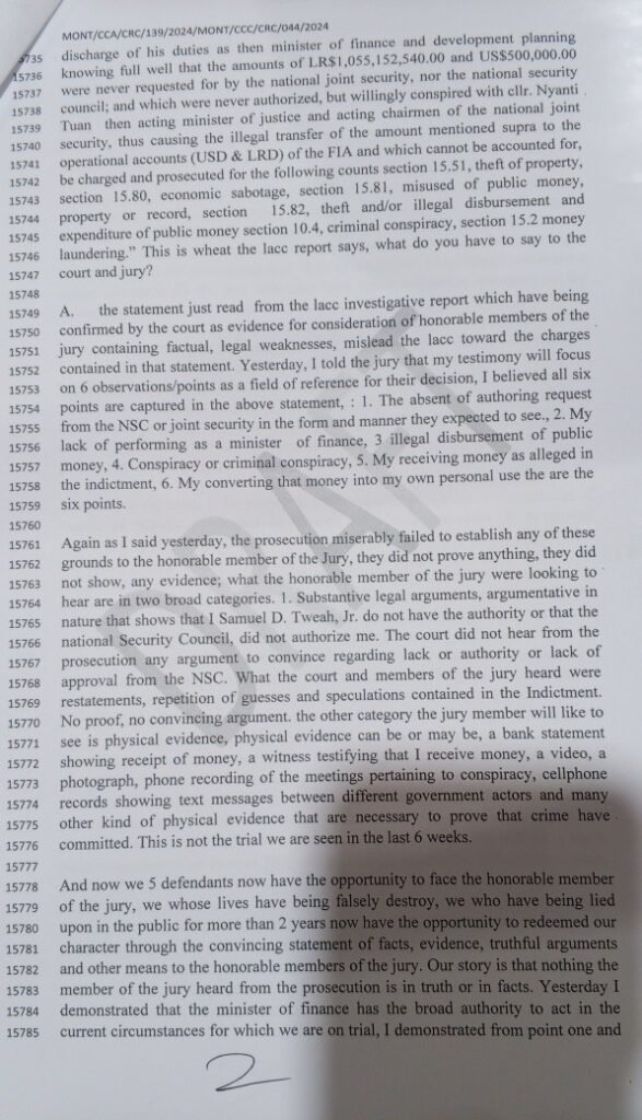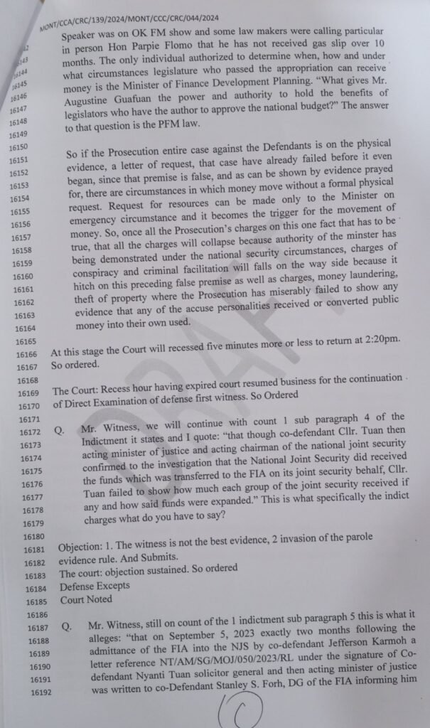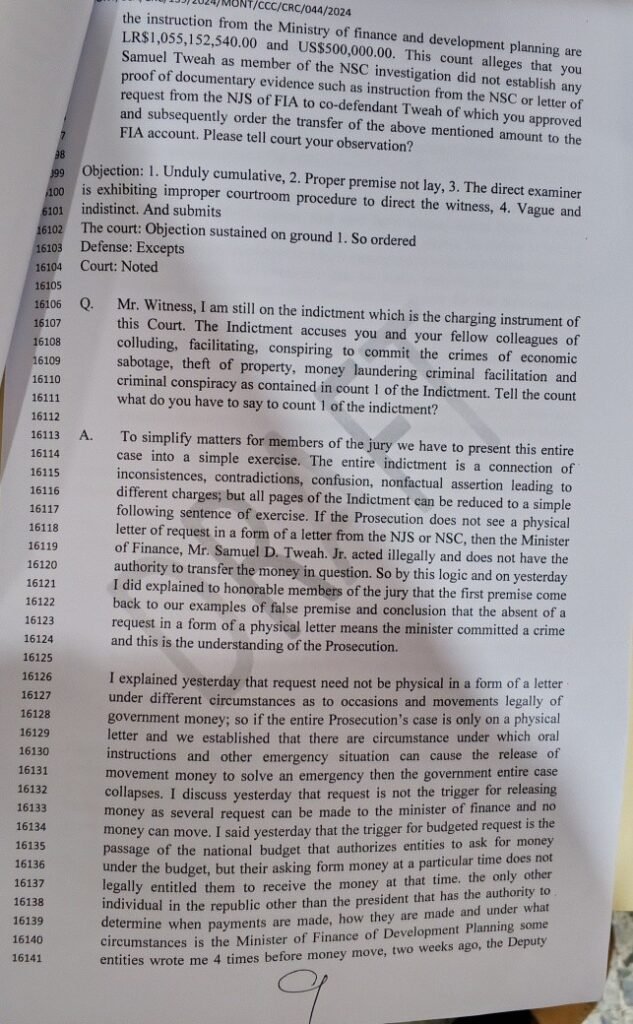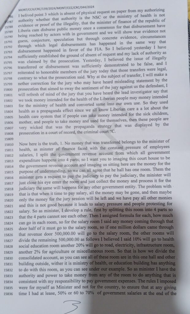 Tweah’s defense rests largely on his claim that, as finance minister, he held broad authority over government spending, including in urgent or security-related situations.