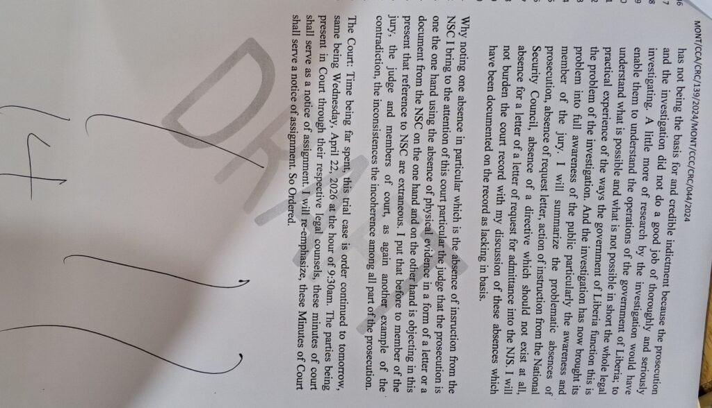 Tweah, while testifying on the witness stand on Wednesday, April 22, 2026, dismissed all charges of criminal conspiracy, money laundering, misused of public funds and amongst other charges.