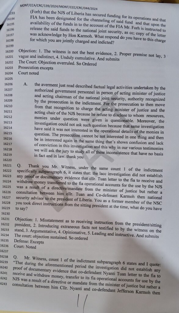 The Liberia Anti-Corruption Commission (LACC) lead Investigator Baba Mohammed Boika while testifying as prosecution prime witness told the court that the funds were not properly authorized and cannot be fully accounted for.