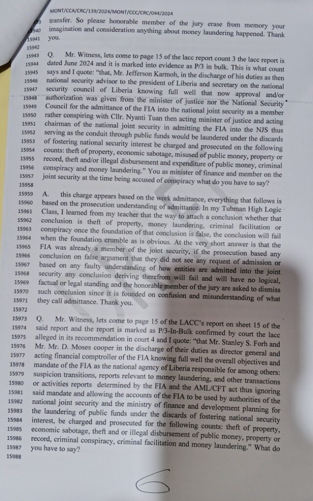 The case, brought by the Liberia Anti-Corruption Commission, centers on the transfer of more than LR$1 billion and US$500,000 to accounts associated with the Financial Intelligence Agency (FIA).