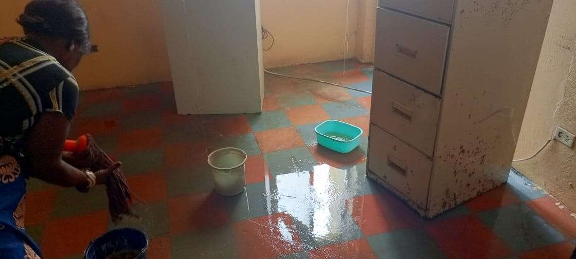 Documents and equipment were destroyed when the Heavy pull of rain leagued in some offices of the University including the management Staff (TH-27).