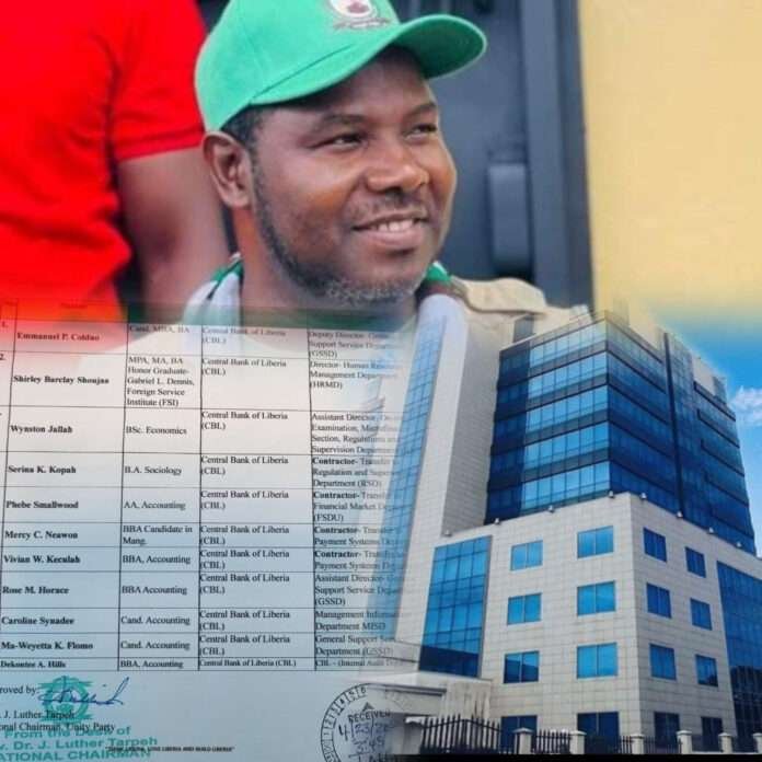 Despite no public announcements of vacancies, Verity News has uncovered a document from the office of Unity Party Chairman, Rev. Dr. Luther Tarpeh, addressed to CBL Governor J. Aloysius Tarlue.