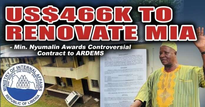 Internal Affairs Minister Francis Sakila Nyumalin executed the agreement on January 23, 2025. ARDEMS Inc., represented by its General Manager, Philip Fatormah, has been authorized to renovate the Ministry of Internal Affairs. The contract has sparked public interest and outrage.