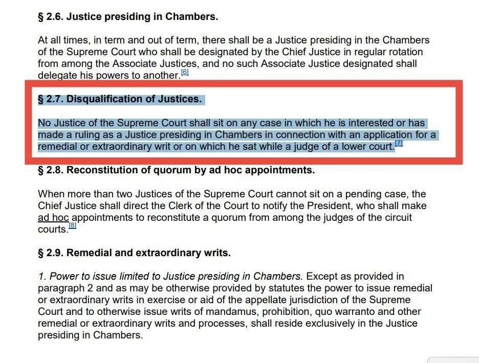1) The entire Supreme Court violated a common principle in Law called ‘Nemo Judex in Causa Sua,’ which states ‘a judge who is a party to case is not qualified to preside over such a matter.’ Why did Chief Justice Yamie Quiqui Gbeisay, Sr. preside?