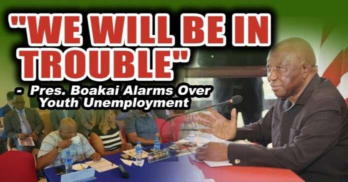 President Joseph Nyumah Boakai has raised alarm over youth unemployment, economic challenges, and rising violence, warning that Liberia faces serious risks if these issues are not urgently addressed.