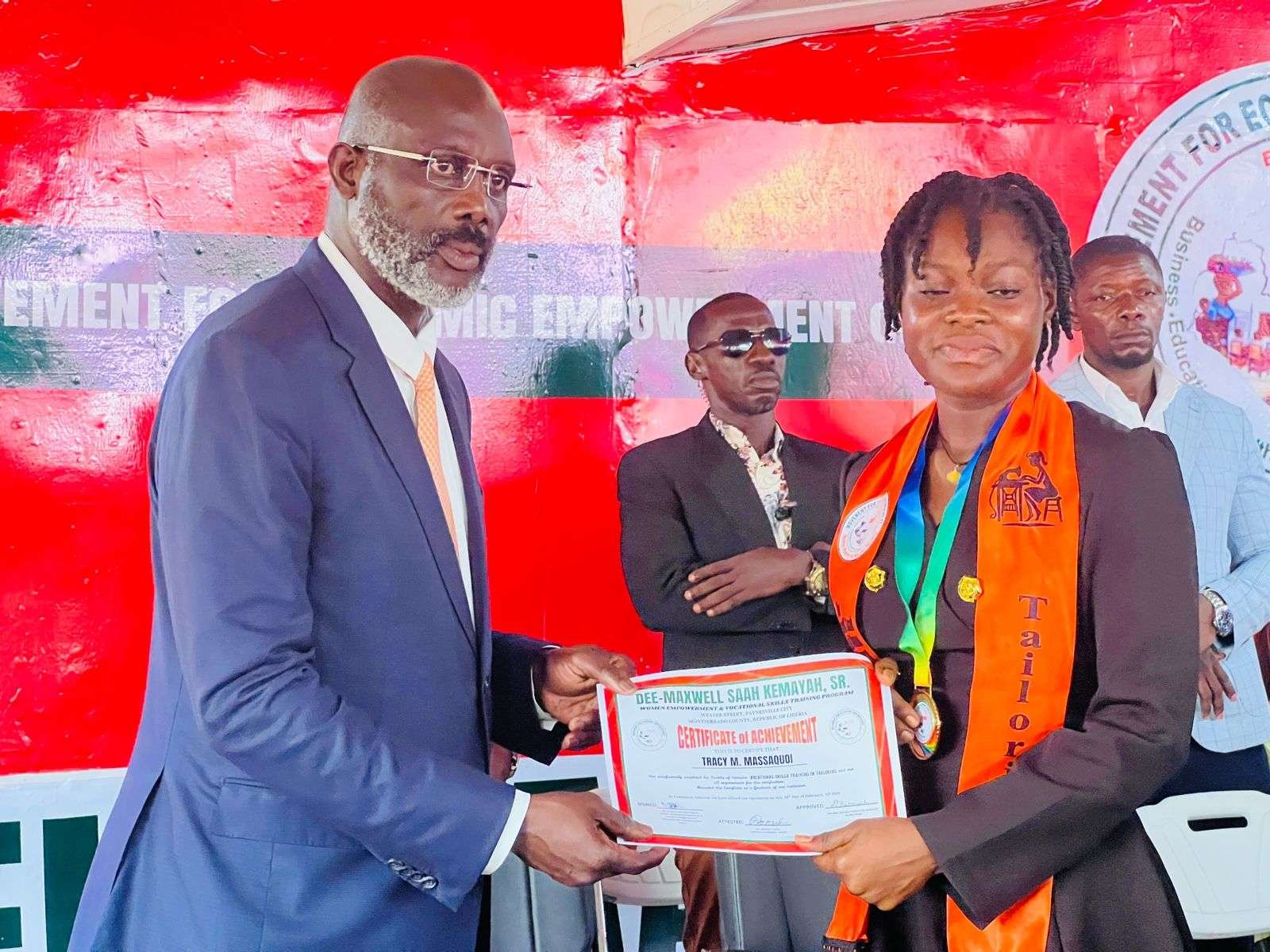 Paynesville, Liberia — Former President George Manneh Weah encouraged 49 women graduating from the Movement for Economic Empowerment (MOVEE) Skills Training Program to pursue economic independence through vocational skills. The graduates completed intensive courses in tailoring and cosmetology under the Dee Maxwell Saah Kemayah Women Empowerment and Skills Training Program.