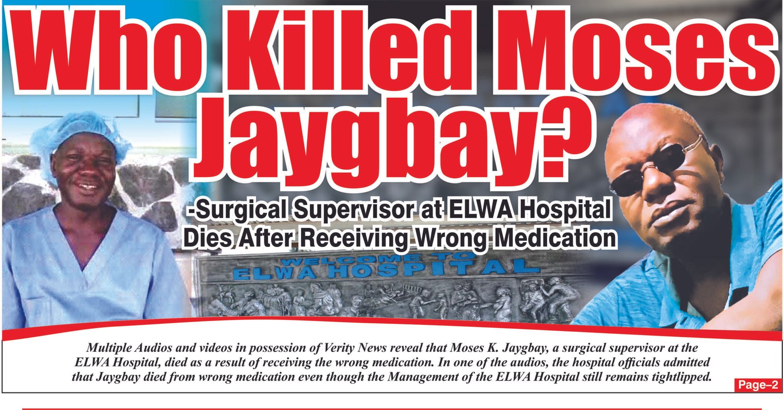 Multiple audios and videos in possession of Verity News reveal that Moses K. Jaygbay, a surgical supervisor at the ELWA Hospital, died as a result of receiving the wrong medication