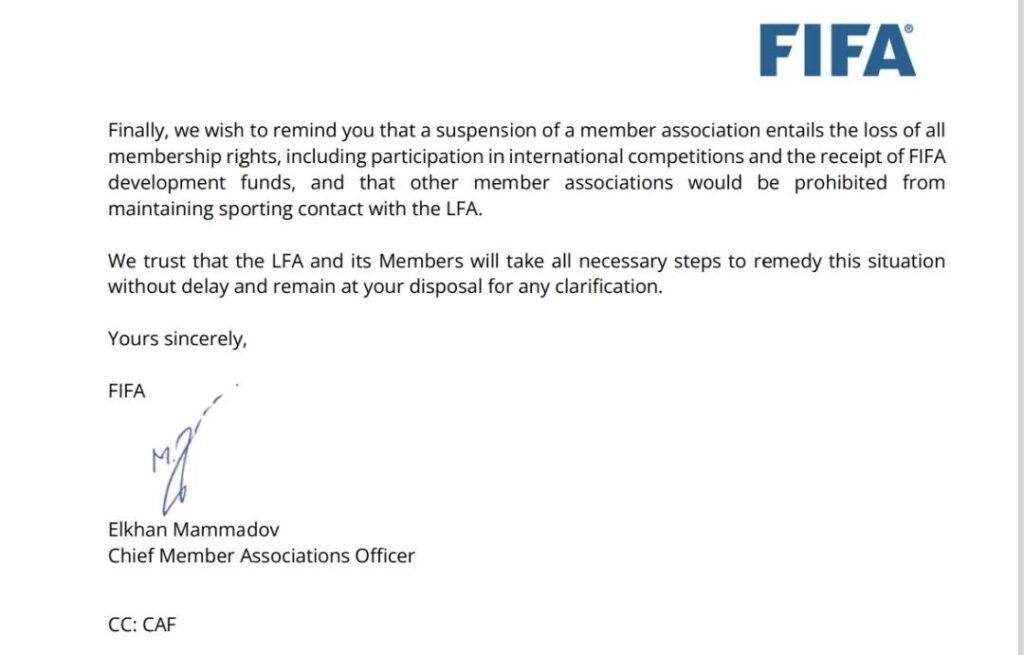 The LFA claimed that Fifa, in a communication on 22 March, warned that court interference in football governance constitutes “undue third-party influence,” which may lead to the immediate suspension of Liberia from international football.