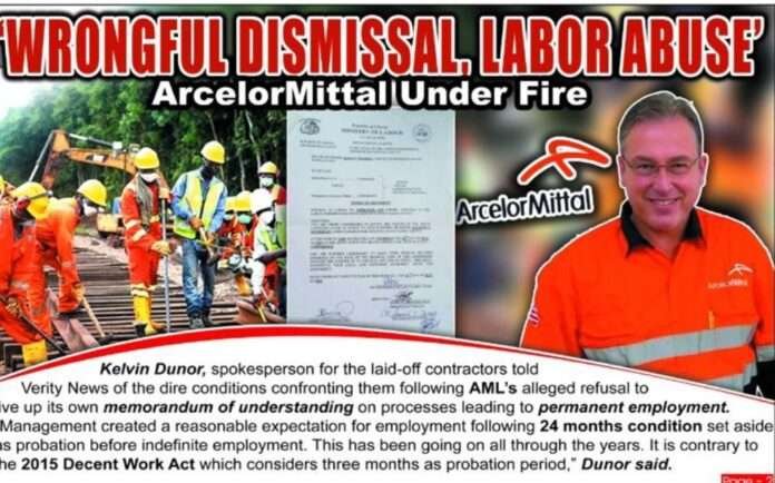 Kelvin Dunor, spokesperson for the laid off contractors told Verity of the dire conditions confronting them following AML’s alleged refusal to live up its own memorandum of understanding on processes leading to permanent employment.
